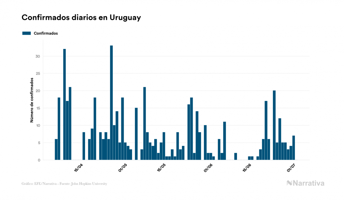 Uruguay no suma ningún nuevo caso de contagio por coronavirus en el último día