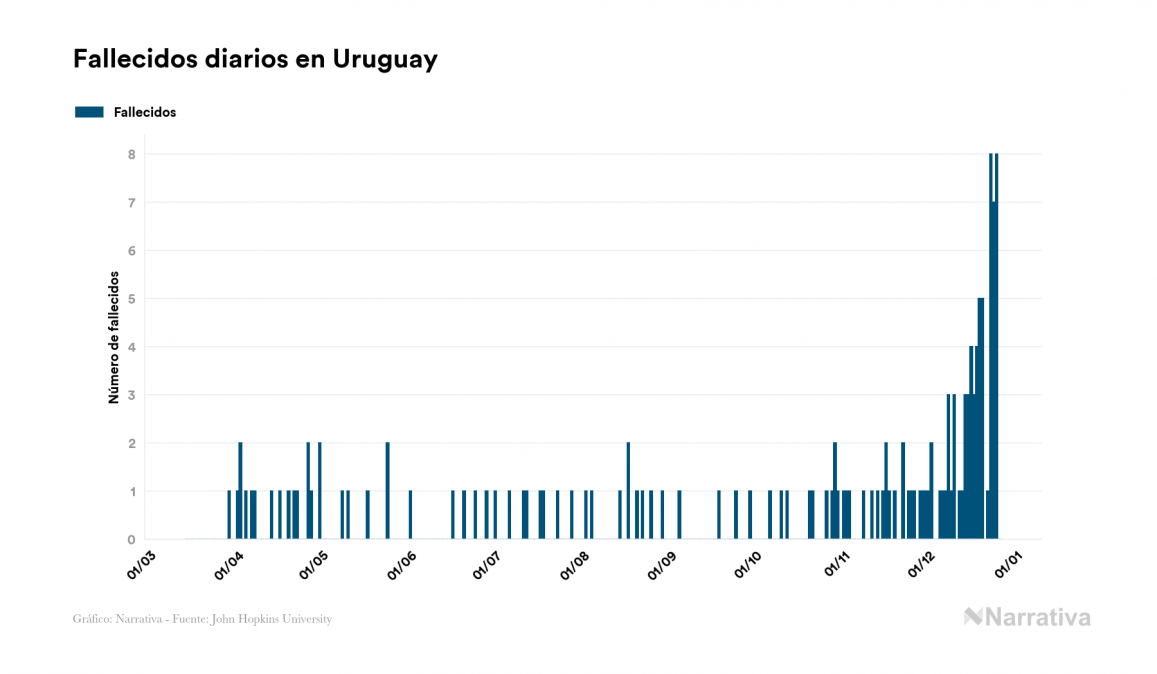El coronavirus deja ya 15.848 casos de contagio en Uruguay, con 5.226 de ellos actualmente activos y 143 fallecidos, según los últimos datos correspondientes al 26 de diciembre. Además, un total de 10.479 personas ya se ha recuperado desde que se produjo el primer contagio en el país.