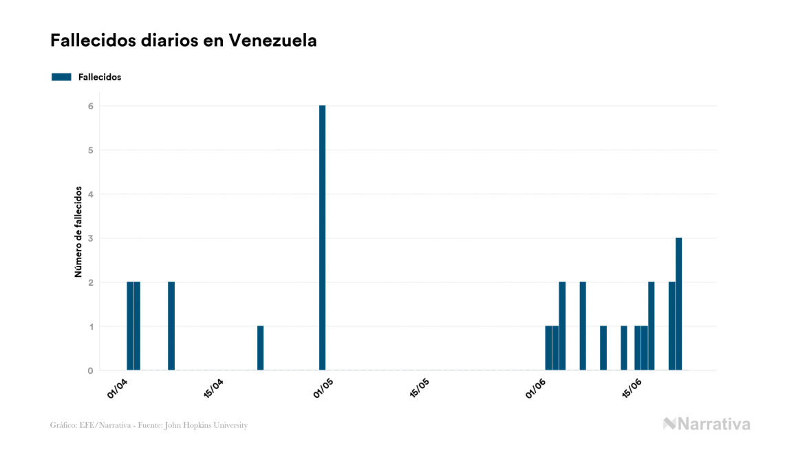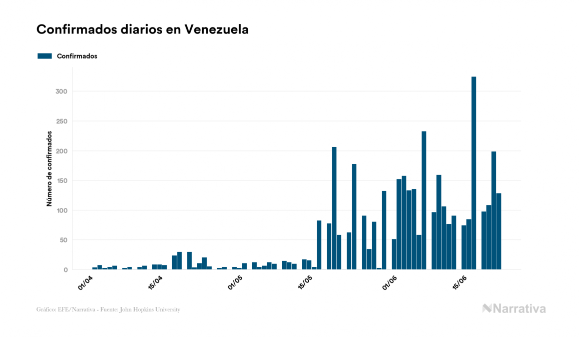 La COVID-19 deja ya 3.917 casos de contagio en Venezuela, con 3.049 de ellos actualmente activos, 33 fallecidos y 128 nuevos positivos, según los últimos datos correspondientes al 22 de junio. Además, desde el primer caso se han recuperado 835 personas.