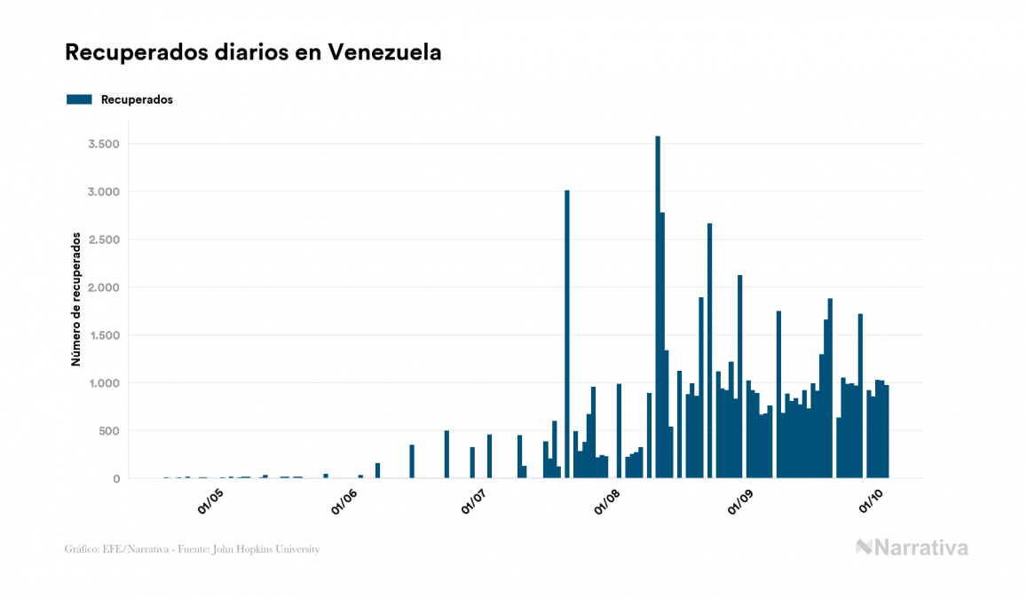 Según los últimos datos, actualmente en Venezuela hay 8.961 casos activos de COVID-19 tras confirmarse 791 nuevos positivos y 971 altas médicas este sábado. Desde el comienzo de la pandemia, el número total de contagiados asciende a 76.820, con 67.216 recuperados y 643 fallecidos.