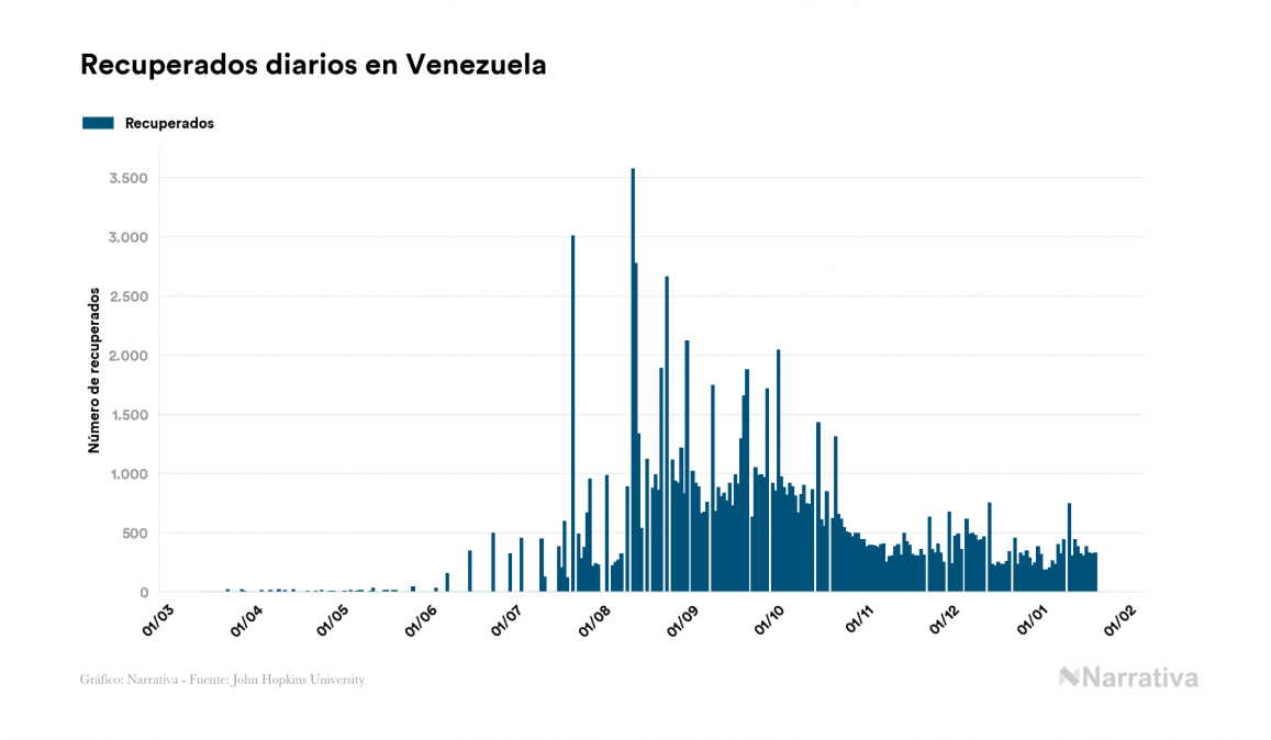 El nuevo coronavirus deja ya 121.691 casos de contagio en Venezuela, con 6.587 de ellos actualmente activos y 1.122 fallecidos, según los últimos datos correspondientes al 21 de enero. Además, un total de 113.982 personas ya se ha recuperado desde que se produjo el primer contagio en el país.