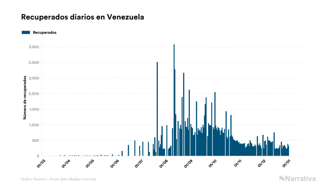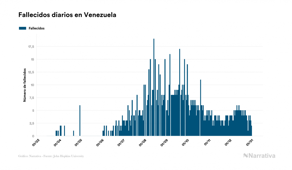 El nuevo coronavirus deja ya 113.884 casos de contagio en Venezuela, con 4.953 de ellos actualmente activos y 1.030 fallecidos, según los últimos datos correspondientes al 2 de enero. Además, un total de 107.901 personas ya se ha recuperado desde que se produjo el primer contagio en el país.
