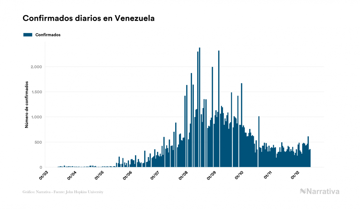 El nuevo coronavirus deja ya 108.480 casos de contagio en Venezuela, con 4.244 de ellos actualmente activos y 965 fallecidos, según los últimos datos correspondientes al 16 de diciembre. Además, un total de 103.271 personas ya se ha recuperado desde que se produjo el primer contagio en el país.
