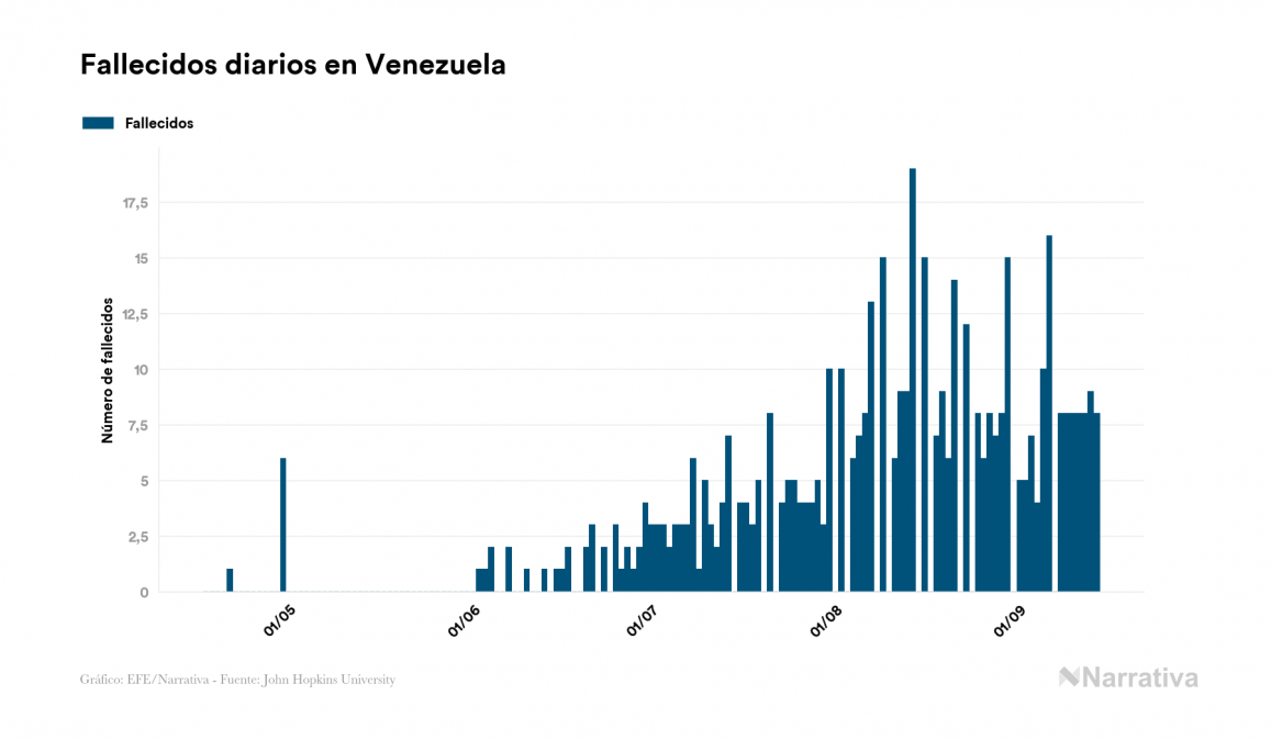 Según los últimos datos, actualmente en Venezuela hay 11.411 casos activos de COVID-19 tras confirmarse 910 nuevos positivos y 915 altas médicas este lunes. Desde el comienzo de la pandemia, el número total de contagiados asciende a 60.540, con 48.644 recuperados y 485 fallecidos.