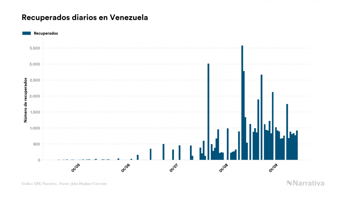 Venezuela reduce su número de personas contagiadas por COVID-19 gracias a un aumento de los recuperados, 915 en el último día