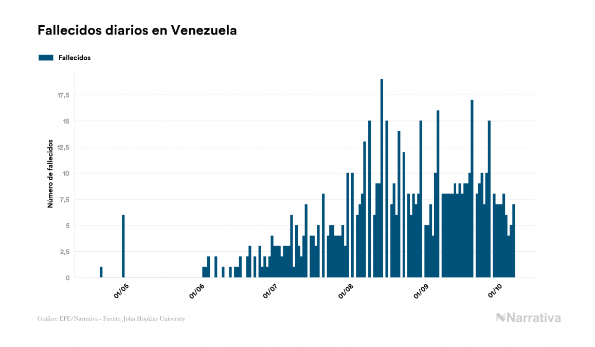 Venezuela registra siete fallecidos este miércoles por coronavirus, 665 en total